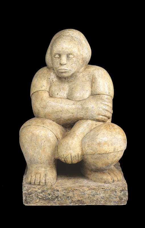 Hayward Oubre was a multimedia artist and educator from New Orleans, LA. Seated Woman is a sculpture of a bodacious woman with a solemn expression. Her right arm is crossed over her chest, and her left arm hangs between her legs.