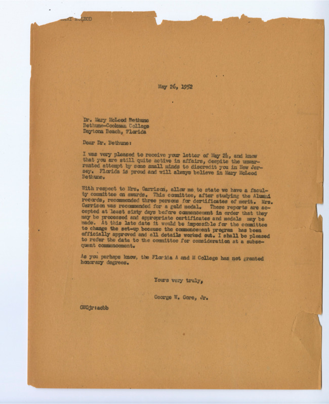 Through correspondence and faculty recommendations, President Gore and Dr. Mary McLeod Bethune worked together to strengthen their respective institutions. Their collaboration focused on exchanging ideas and fostering support, driven by a mutual commitment to educational advancement and the empowerment of their communities.