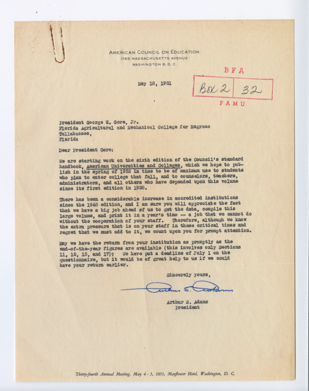 President Adams requested FAMC’s undergraduate and financial statistics for the college handbook to showcase the institution's remarkable academic growth and financial strength following desegregation. This provided prospective students and stakeholders a vibrant snapshot of FAMC’s promising future.