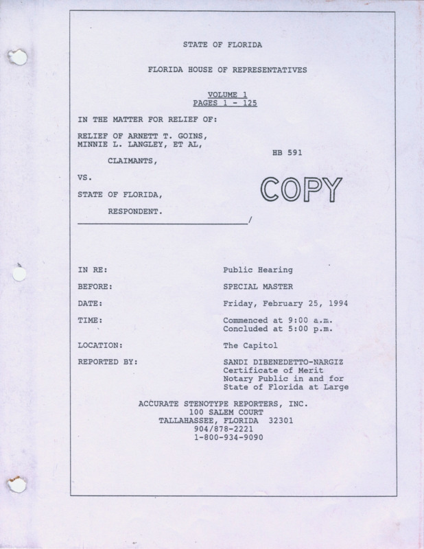 Public hearing transcripts that recount the brutal events of the Rosewood Massacre, detailing murders, rapes, and violent acts committed by white mobs, town officials, and deputies. They also capture the defiance of Black residents, who fought back to protect their families despite the overwhelming threat to their lives.