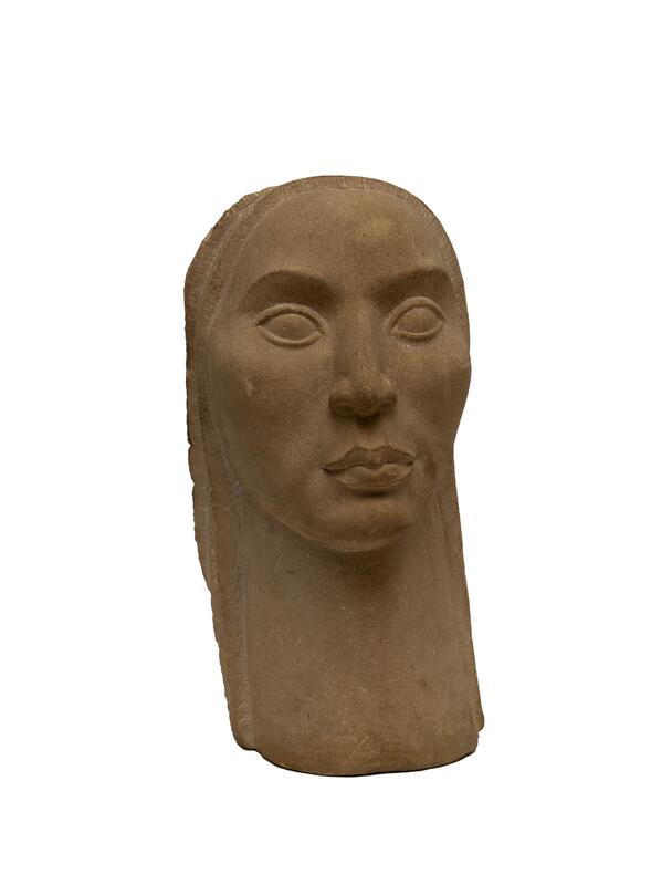 William Artis was a sculptor from Washington, DC. A Terra-Cotta Head is a bust of a woman with a solemn expression. The bust has a slight head tilt with an elongated neck.