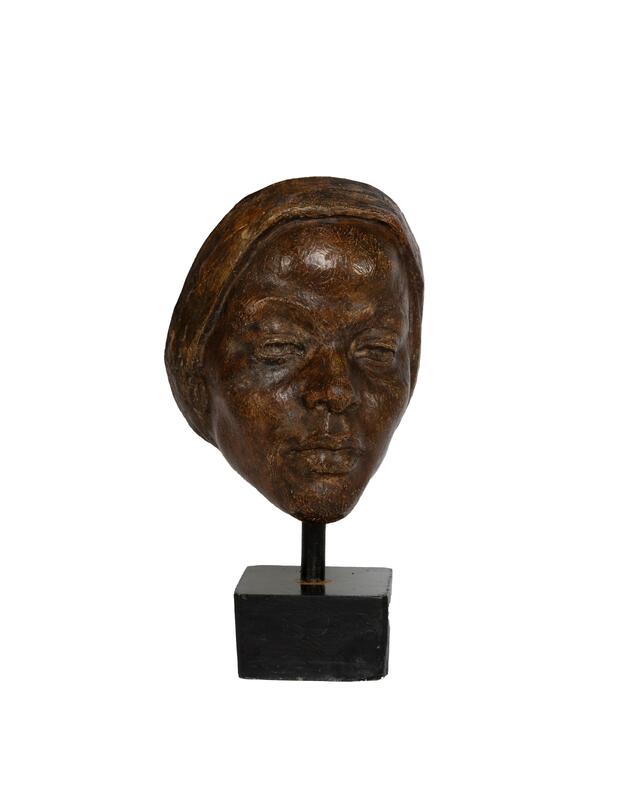 Jewell Woodard Simon was an internationally acclaimed artist, teacher, and poet from Houston, TX. Margaret is a plaster bust of a Black woman. Like her other sculptures, Simon details the subject's features, including her nose, mouth, eyes, ears, and hair texture.