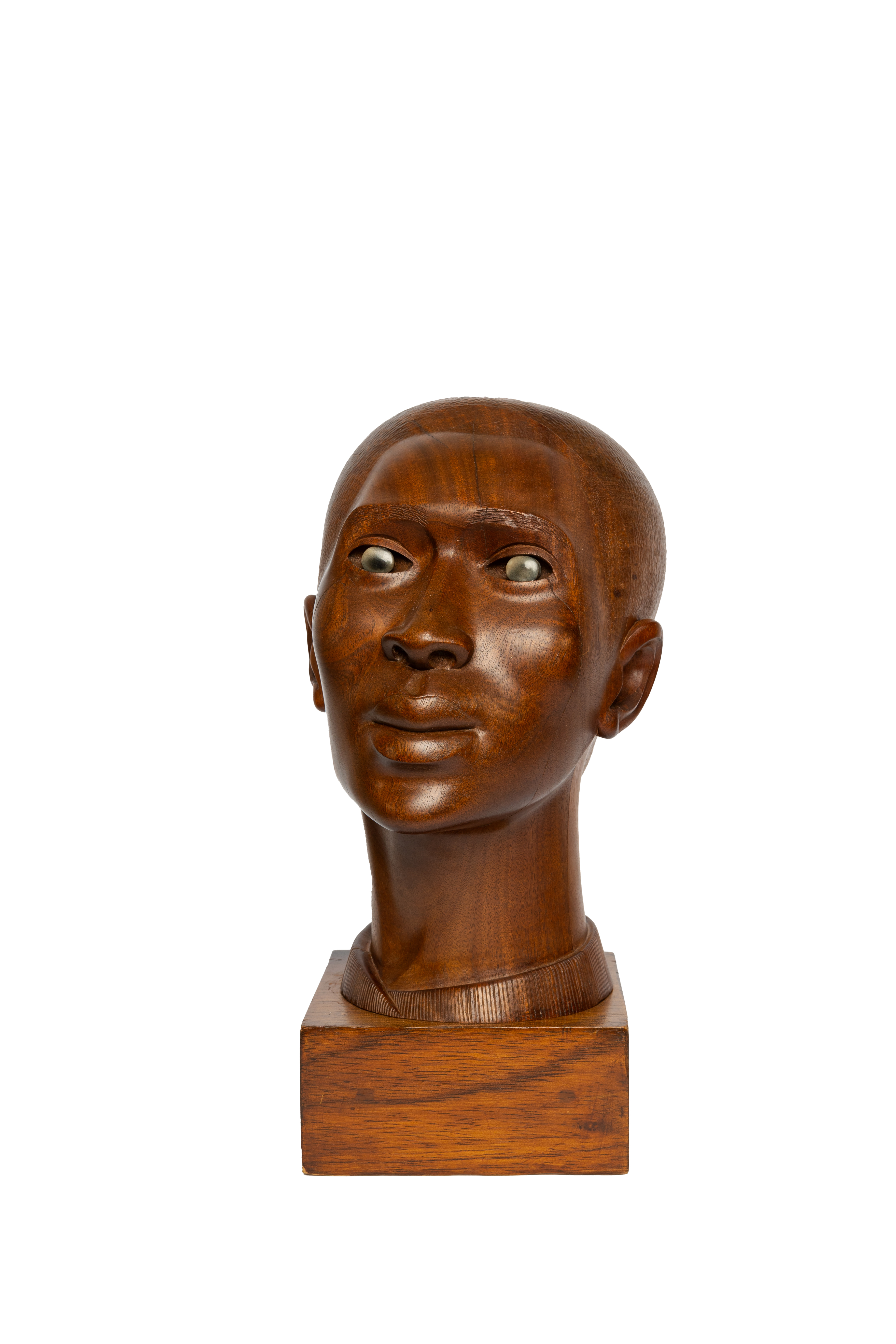 Elizabeth Catlett was an artist and educator from Washington, D.C., who repatriated to Mexico. Negro Woman is a wooden sculpture of a Black woman. Catlett crafts the woman with an intense stare through careful sculpting and inlaid onyx eyes.