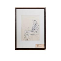 Zenobia Hammonds was an artist from Hampton, VA. Student Artist is a sketch of a male student working at a tabletop easel. The artist has his head resting on his hand as he creates his own art.