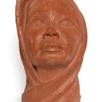 William Artis was a sculptor from Washington, NC. We Have Seen His Face is a ceramic bust of a hooded woman with her head raised. The subject holds a reverent expression as she looks toward God.