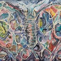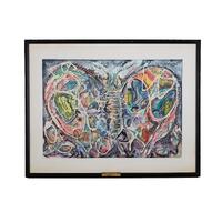 Leon Lank Leonard, Sr. was a painter, sculptor, and educator from Waco, TX. Mariposas depicts abstracted patterns overlaid on abstracted butterflies.