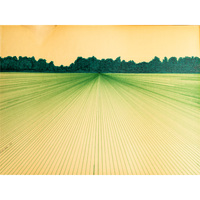 Alfred Figures was an artist from Mobile, AL. Green Field is a landscape painting that depicts its namesake with a treeline in the distance.