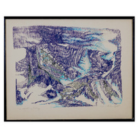 J. Brooks Dendy III was a painter, graphic artist, and educator from Pittsburgh, PA. The Allegheny Valleys depicts an aerial view of a mountain range, valley, and river in Western Pennsylvania.