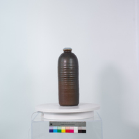 Simms’ ceramic vessel is hollow, with an opening at the top, and has ridges and a dark maroon glaze. Carroll Harris Simms worked alongside Dr. John T. Biggers to establish the Texas Southern University Art Department. Simms taught sculpture, ceramics, and jewelry-making classes.