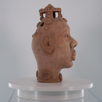 Ellison’s bust was created during his time as an art student at TSU. Under the instruction of Professor Carroll Harris Simms, artists would create self-portraits embellished with decorations like spirals and accentuated crown pieces, like in Ellison’s sculpture. These busts are inspired by Nok terracotta sculptures and Ife busts, which Simms saw during his travels to Western Africa.
