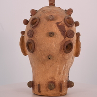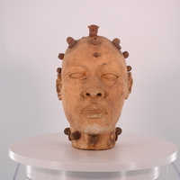 This unknown student’s bust was created during their time as an art student at TSU. Under the instruction of Professor Carroll Harris Simms, artists would create self-portraits embellished with decorations like spirals and accentuated crown pieces, like in this sculpture. These busts are inspired by Nok terracotta sculptures and Ife busts, which Simms saw during his travels to Western Africa.