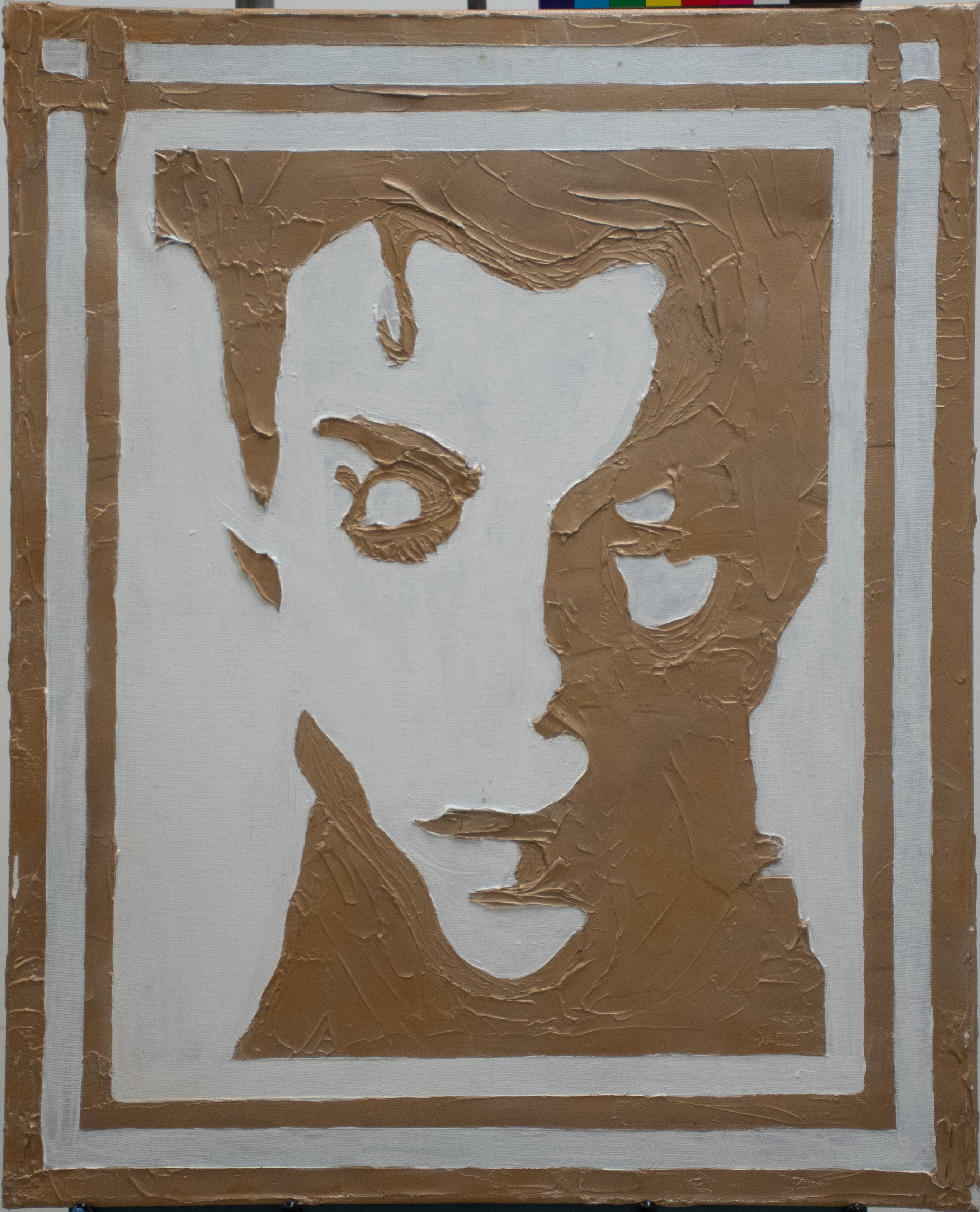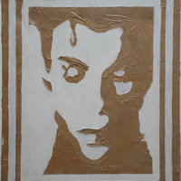 Morris’ painting is a golden, close-up portrait of singer and performer Prince; his head is slightly bowed and his eyes are closed. The painting is inspired by Prince 3, a photograph of the singer taken by Herb Ritts in 1991. Before his death, Prince became one of the best-selling musicians of all time, celebrated for his soaring vocals, multi-instrumental skills, and pioneering aesthetics and sounds.