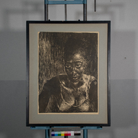 Obey’s print is a self-portrait. Under the direction of Dr. Biggers and Professor Simms, students would paint and draw self-portraits and sometimes sculpt self-portraits of their busts. This print depicts Obey in her bra; she also painted a self-portrait in a similar style. Biggers once referred to Obey as "one of our finest painters.”