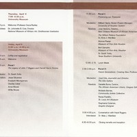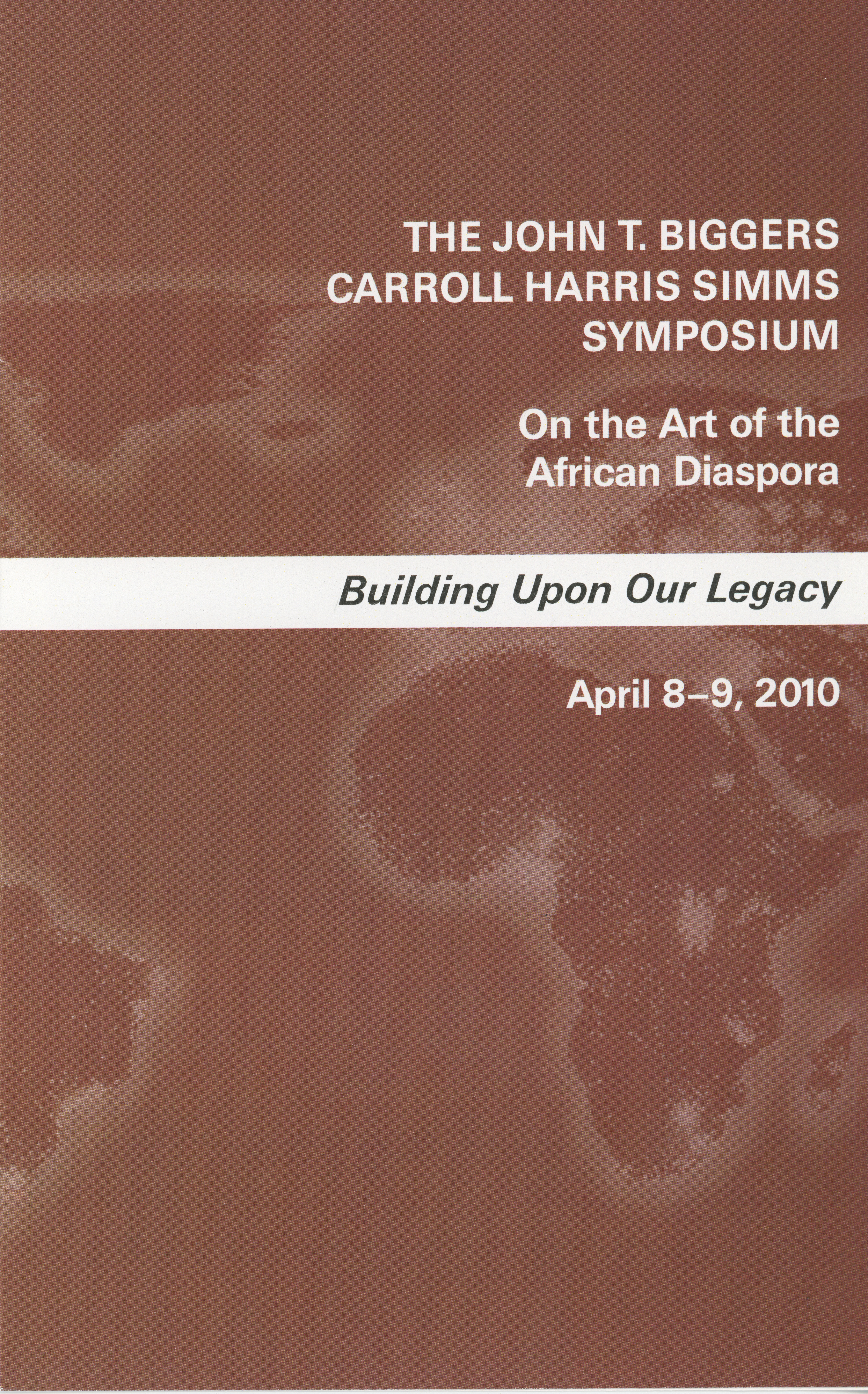 This is a brochure for the April 2010 John T. Biggers Carroll Harris Simms Symposium On the Art of the African Diaspora: Building Upon Our Legacy. This regular event from the University Museum at Texas Southern brings together artists, historians, educators, students, alumni, and members of the public to celebrate the legacy of Biggers and Simms, who worked together to build TSU’s art department from the ground up.