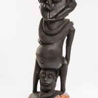 The Protector of the Flocks safeguards sheep from malevolent spirits and trespassers. The spirit is being bitten by the serpent that is wrapped around its neck. This demonstrates its willingness to accept pain and suffering in order to defend and protect. It highlights the resilience of African American agricultural heritage.