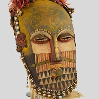 This Bongo mask, intricately carved and vibrantly painted, represents the artistic traditions of the Bongo people of Central Africa. Known for its expressive features and elaborate designs, it serves a ceremonial purpose, often used in rituals to connect with ancestral spirits.