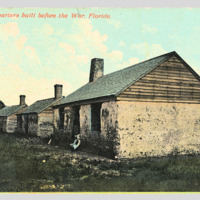 This vintage Florida souvenir postcard depicts slave quarters built before the Civil War. The image captures small, weathered structures used to house enslaved people on plantations. Such postcards often romanticized the antebellum South, overlooking the harsh realities of slavery while promoting Florida’s historic landscape to tourists.