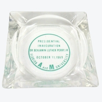 A 1969 presidential inauguration ashtray that commemorates the swearing-in of President B.L. Perry at Florida Agricultural and Mechanical University. As a historical artifact, it symbolizes his leadership during a transformative period for FAMU, marking a significant moment in the university's growth and development.