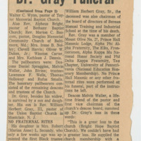 These newspaper clippings discuss the unfortunate passing of former Florida A&M President Dr. William H. Gray, Jr. Gray allegedly had a premonition of his death before it occurred, giving his wife instructions on what to do.