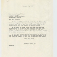 Recommendation letters from President Gore regarding FAMU's Second Annual Hall of Fame, a celebration of the university's 75th anniversary, highlight the election of Mr. David Bryant and Mr. Rufus J. Hawkins. Both accepted the invitation, while Mr. Robert Bacon regretted he could not attend due to scheduling conflicts.
