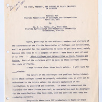 A fierce advocate for education, especially amongst the African American community, this address by Dr. Benjamin L. Perry, Jr. was given to the Florida Association of Colleges and Universities in 1971. He speaks on the development of Black schools and how crucial Black history is to the past, present, and future of Historically Black Colleges.