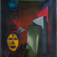 Boyd's painting is inspired by philosopher Charles W. Mills's book, "Blackness Visible." Boyd's painting responds to the question of "what makes Blackness visible?" with, in her words, "three possible answers to this: our culture, our revolutions, and/or our d/Death. Is it our culture? Our revolution? Our d/Death? Or is it an amalgamation of all three?" The artist is a graduate of Texas Southern University and cites her parents, who always encouraged her to write and draw, as creative inspirations.