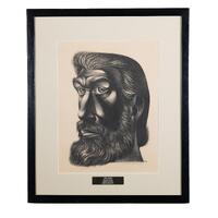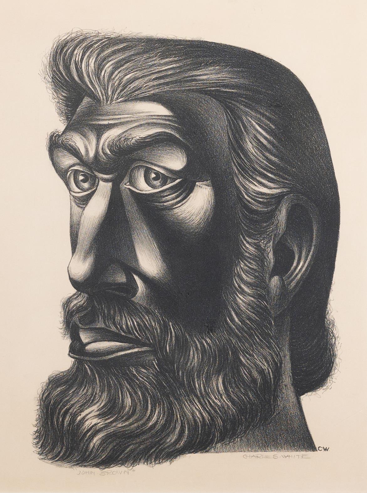 Charles White was a painter, printmaker, muralist, and educator known for his stylistic approach to African American subjects from Chicago, IL. John Brown is a print portrait of its namesake. He was a prominent member of the American abolitionist movement. The print portrays Brown in dark hues as he stares off into the distance.