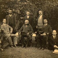 Booker T. Washington welcomed the Liberian Commission to the United States in 1909. This photograph shows the Commissioners seated from left to right: Charles B. Dunbar, G. H. Gibson, a former president of the Republic of Liberia, J. J. Dossen, a former Vice President of the Republic.