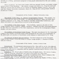 A document laying out the plans for the construction of the Martin Luther King Jr. Memorial Center and plans to continue the legacy of non-violence and uplift of Dr. King.