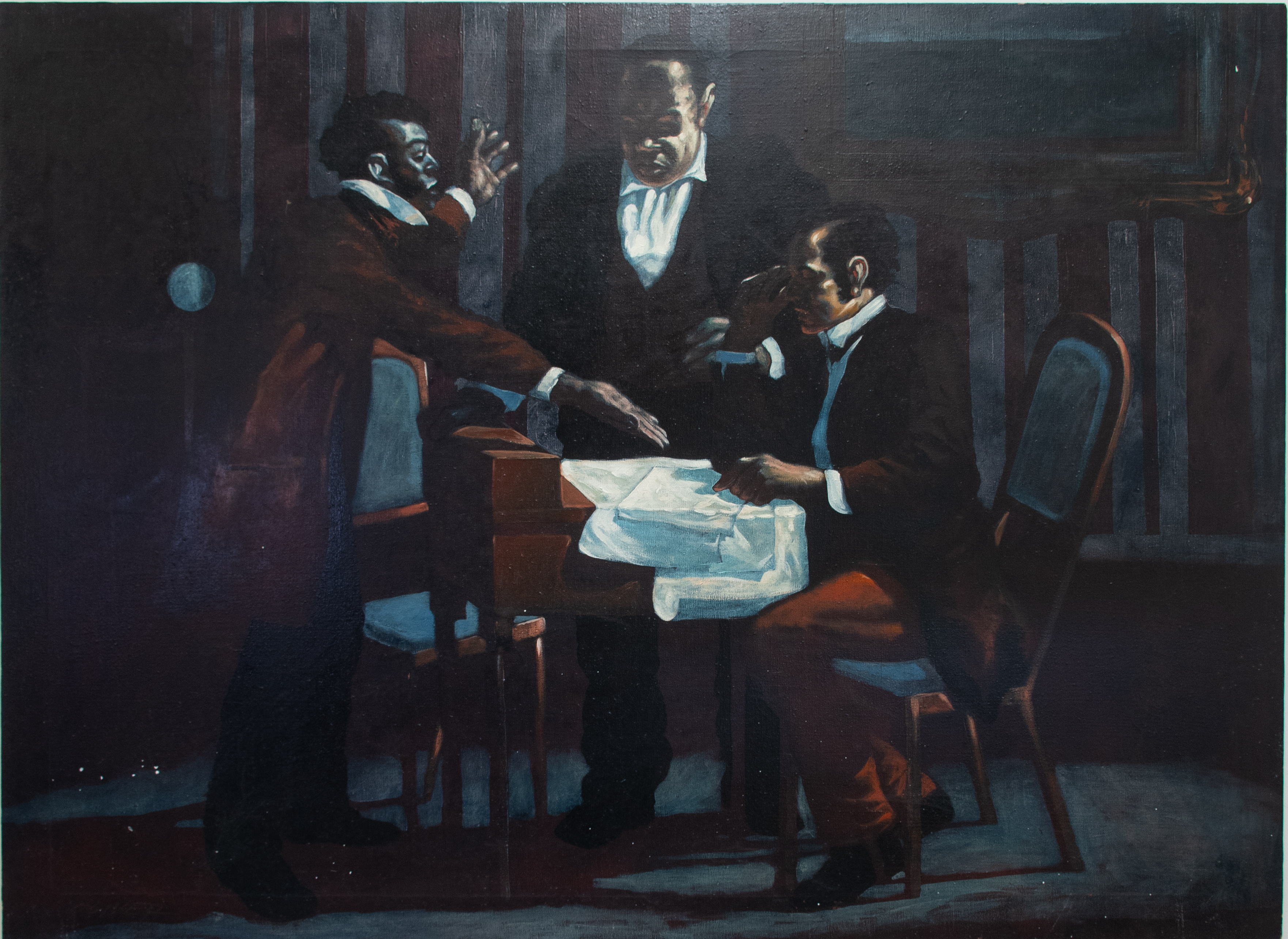 Oliver's painting depicts vanguard Black politicians from the Reconstruction period following emancipation. Radical Reconstruction saw the election of dozens of Black lawmakers in former slave states like Texas. After 1897, Texas didn't elect another Black legislator until 1966.
