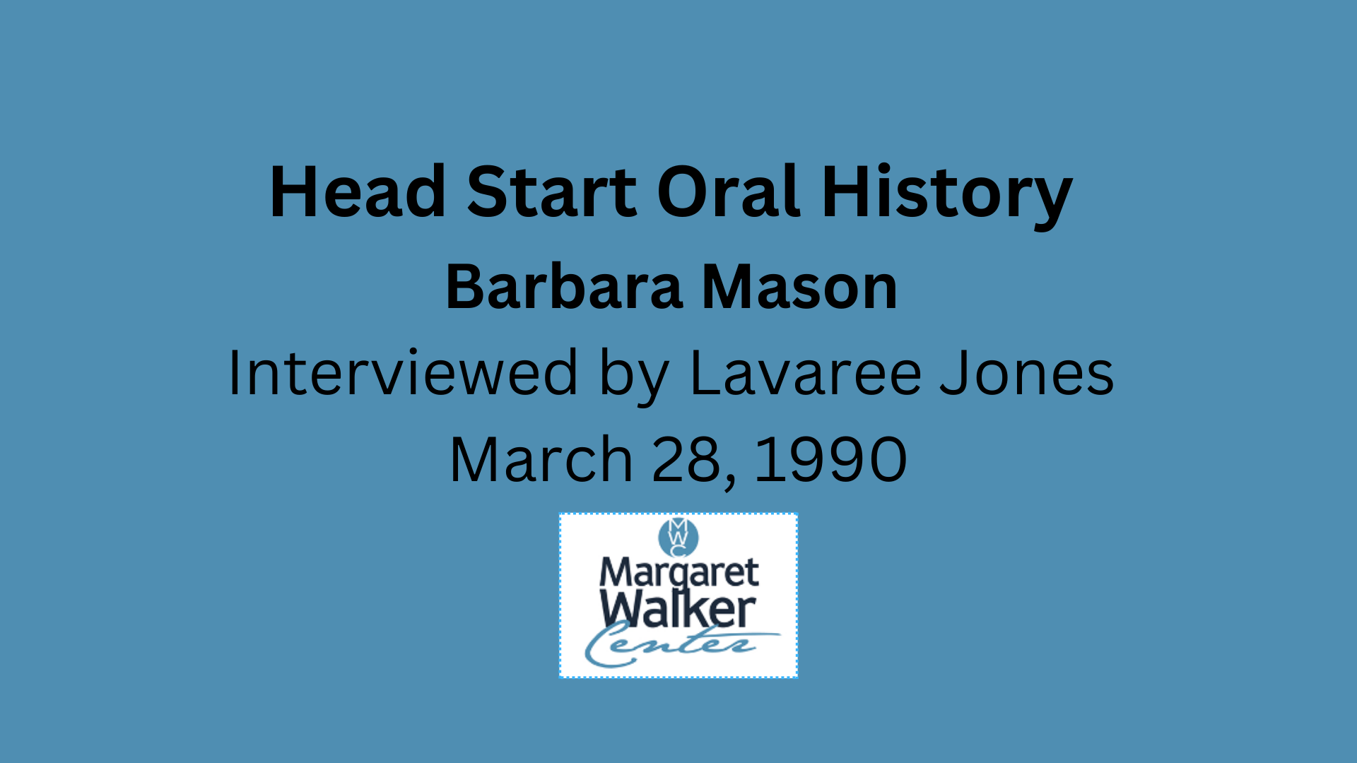 Barbara Mason discusses the beginnings of Head Start in Utica, Mississippi, in 1965 and sending her daughter to attend the Head Start Center at St. Mark's Catholic Church. She goes on to talk about working at a Head Start center in Jackson, Mississippi, as a driver for the kids in the program.