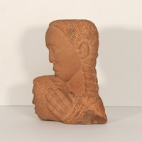 Marion Perkins was a sculptor from Marche, AK. Mother and Child is a limestone bust of its namesake. The mother is placed behind the child as she holds his head. The mother looks toward the viewer as the child looks away.