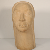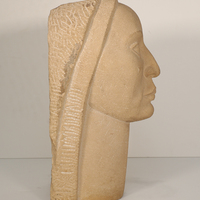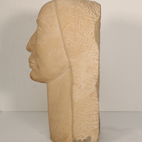 William Artis was a sculptor from Washington, NC. Head of a Young Lady is a limestone bust of a woman. The subject has pursed lips and a broad neck, maintaining a critical expression toward the viewer.