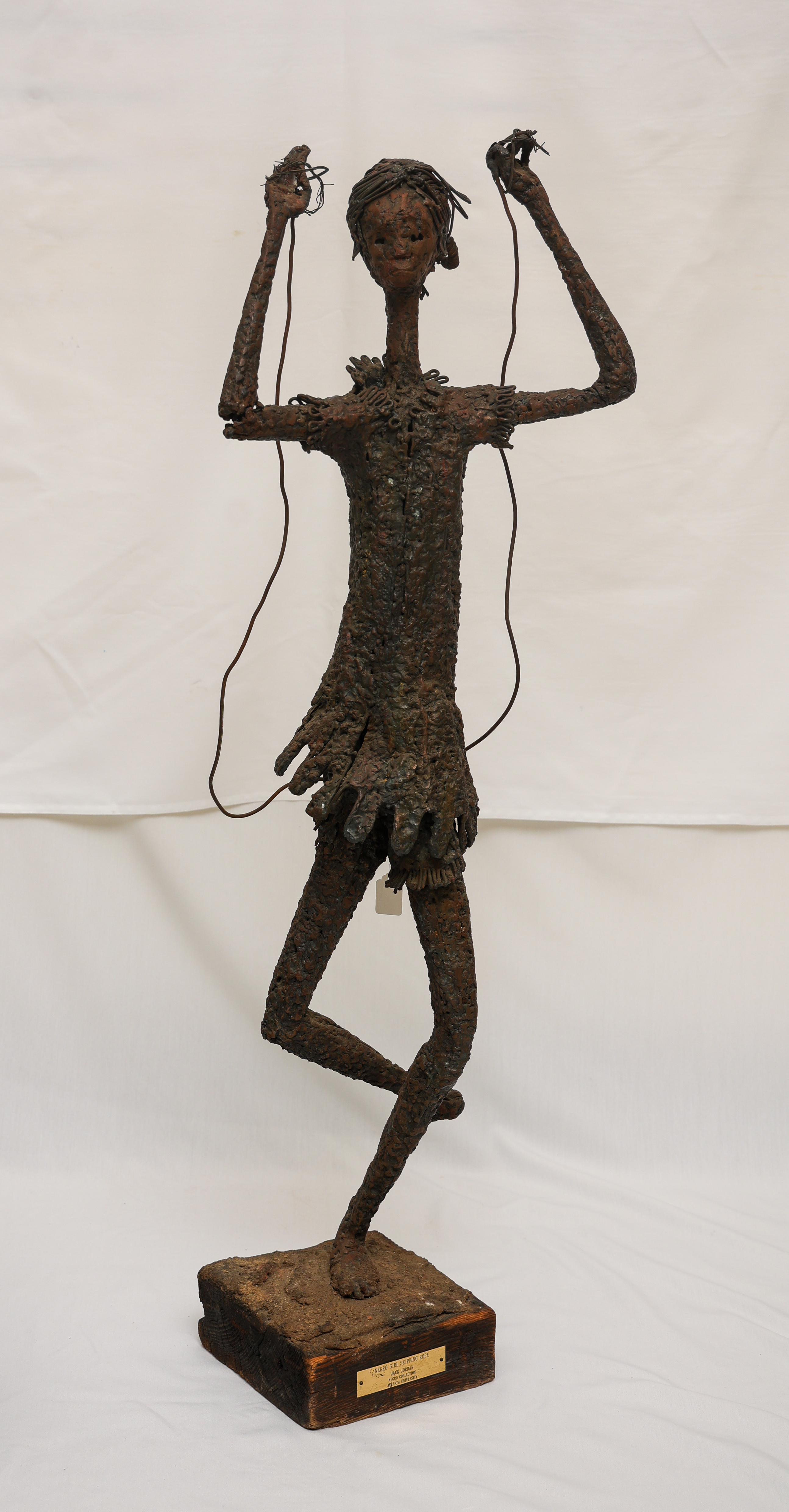 Dr. Eddie Jordan, Sr. was a Southern artist from Wichita Falls, TX. Negro Girl Skipping Rope depicts a young Black girl in the process of playing jump rope. The rope is positioned over her head as she prepares to hop over the rope with one leg lifted.