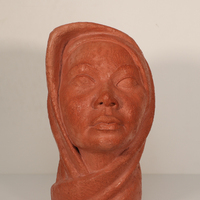William Artis was a sculptor from Washington, NC. We Have Seen His Face is a ceramic bust of a hooded woman with her head raised. The subject holds a reverent expression as she looks toward God.