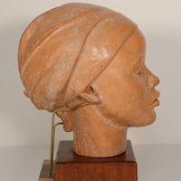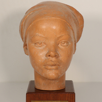William Artis was a sculptor from Washington, NC. Woman with Kerchief is a terracotta sculpture of a Black woman with her head covered by a tied kerchief.