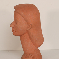 William Artis was a sculptor from Washington, DC. A Terra-Cotta Head is a bust of a woman with a solemn expression. The bust has a slight head tilt with an elongated neck.