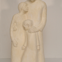 Howard E. Lewis was an Art professor and Korean War veteran from Columbus, OH. The Family is a freestanding Plaster sculpture of a family in an embrace. The father towers over his wife and child, looking down at them as his wife leans into his chest and their son into hers.