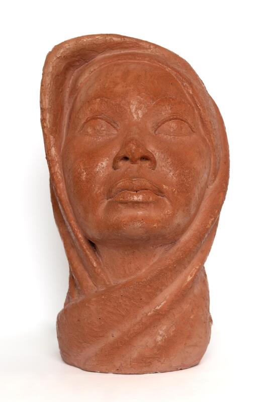 William Artis was a sculptor from Washington, NC. Woman with Kerchief is a terracotta sculpture of a Black woman with her head covered by a tied kerchief.