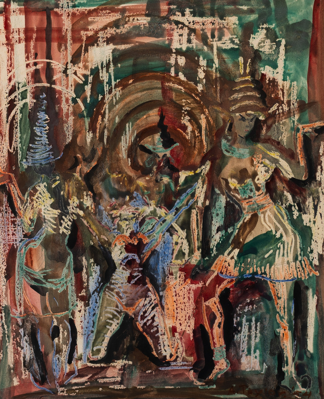 Archie Taylor was an artist from Montgomery, AL. Javanese Ritual is an abstract depiction of an indigenous Indonesian spiritual ceremony. The Javanese have rituals for coming-of-age, marriage, appeals to nature, and secret initiations.