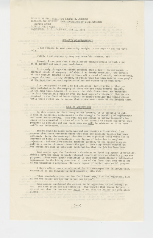 Vice President Lyndon B. Johnson's speeches included two addressing the Negro in America and the pursuit of social justice, advocating for equality and civil rights. The third speech focused on the importance of the educational system and higher education, emphasizing its role in fostering opportunity and progress for all Americans.