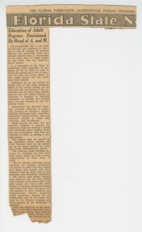 Dr. W. H. Gray’s appointment as FAMC president was celebrated in a newspaper article, where he discussed his vision for practical education. Focused on agriculture, trades, and two-year programs, Gray’s approach aimed to prepare Black students for leadership, an ode to his prior experience leading a Baptist institution.
