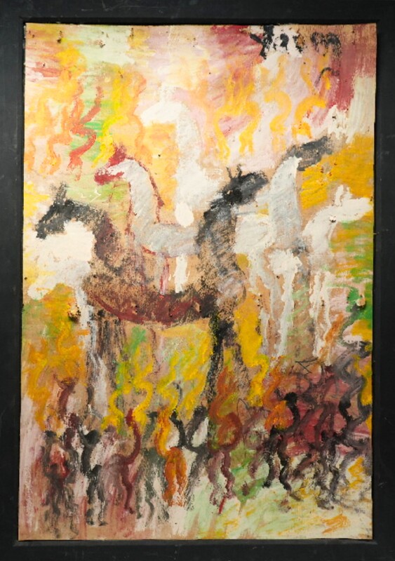 Signature fusion of urban expressionism and folk art. The horses, are a recurring symbol in his work, represent freedom, movement, and resistance. Created with bold, layered brushstrokes on reclaimed wood, the piece embodies themes of liberation and struggle, often inspired by the energy and challenges of inner-city life.
