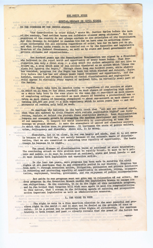 Under President Gore's administration, a White House message tackled harmful statistical stereotypes and societal biases. It condemned discrimination, emphasized voting and education rights, and advocated for the extension and expansion of the Commission on Civil Rights to promote equality and protect civil liberties for all.