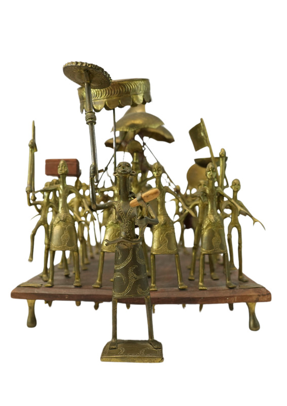 The Kings Procession brass sculpture vividly depicts a ceremonial parade, celebrating the rich traditions and cultural heritage of African royalty. Crafted with intricate detail, it showcases figures adorned in regal attire, emphasizing community and leadership.