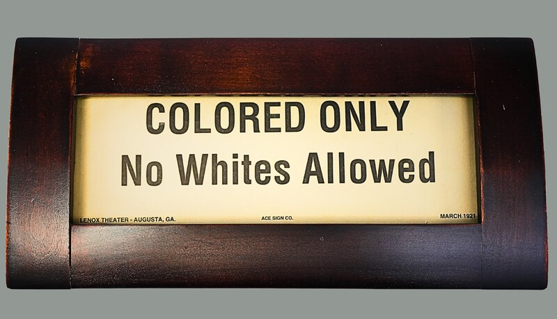A "colored only" sign was a segregation-era sign typically found in the United States during the Jim Crow era, which enforced racial segregation in public places. These signs were used to designate areas, facilities, or services that were reserved for people of color and donated by Dr. James Eaton.