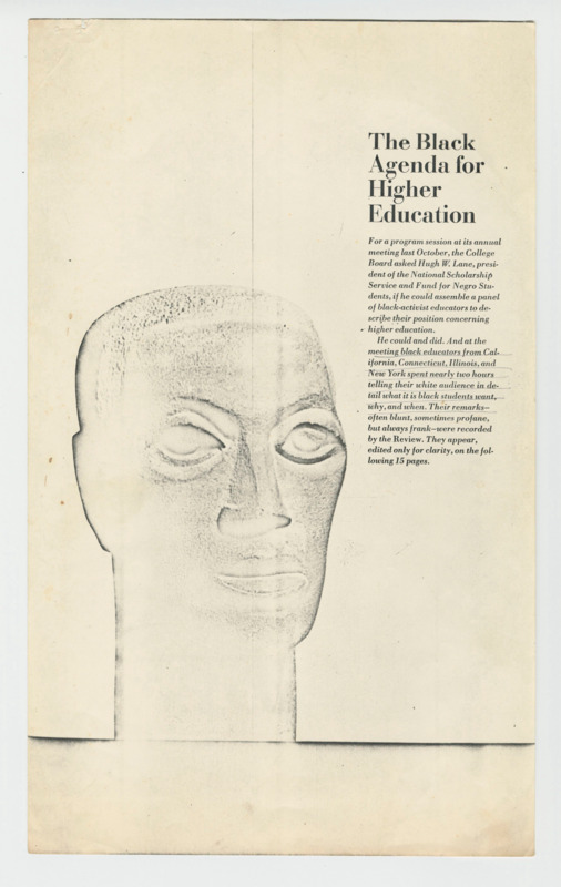 In October 1968, the College Board asked the president of the National Scholarship Service and Fund for Negro Students, Hugh W. Lane, if he could assemble a panel of Black educators to describe their position on higher education. Their comments at the panel were recorded and published in the College Board Review’s Spring 1969 Issue, recorded here.
