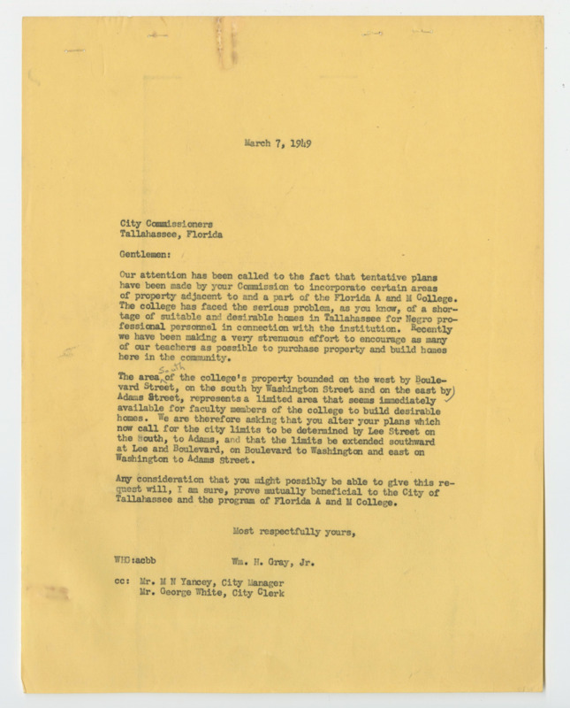 In the late 1940s, the Tallahassee City Commission planned to acquire some land surrounding Florida A&M College, a plan highly opposed by the institution’s president, William H. Gray, Jr. Gray felt it would drive faculty away due to lack of housing. This collection holds correspondence and construction plans.