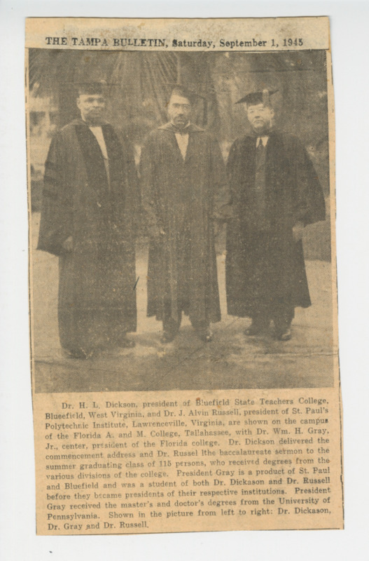 In the Tampa Bulletin, FAMC’s 1945 summer session was praised for its success, with 115 students graduating. President Gray was joined by Mr. H. L. Dickson and Dr. J. Alvin Russell in the celebration. Dickson gave the commencement address and Russell delivered the baccalaureate sermon, acknowledging the graduates’ accomplishments.