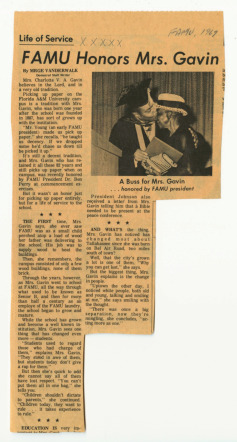 A timeless piece from the Tallahassee Democrat on a woman who essentially grew up with Florida A&M University. Born a year after the institution’s founding, 1888, Charlotte V. A. Gavin offers historical insight into both the early days of FAMU and the growth of Tallahassee’s community through integration.